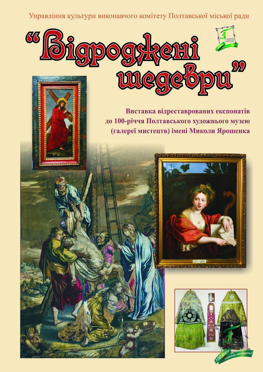 Виставка «Відроджені шедеври», експонована у прес-центрі, як і цілий ряд проектів Полтавського художнього музею (галереї мистецтв) імені Миколи Ярошенка 2019 року, присвячена 100-літньому ювілею музею. Вона демонструє значний обсяг роботи колективу, спрямованої на збереження мистецьких колекцій. Адже в житті будь якого музею немає більш важливішого завдання, ніж передати майбутнім поколінням ті культурні цінності, які він зберігає, у найкращому стані. Досягти цієї мети неможливо без постійної уваги до експонатів, без високого професіоналізму працівників музею та використання новітніх технологій і, звичайно ж, без комплексу реставраційно-консерваційних заходів та фахової допомоги реставраторів.