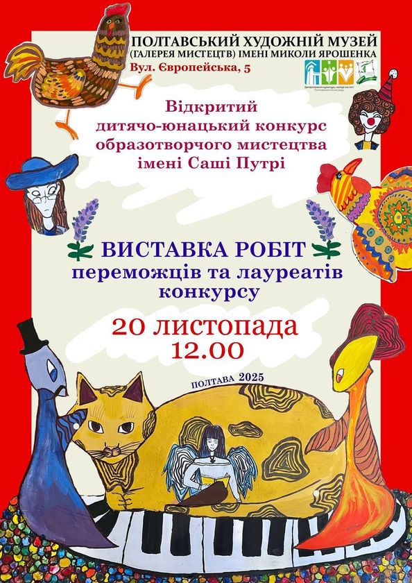 20 листопада 2025 р. у залі дитячої творчості імені Саші Путрі Полтавського художнього музею (галереї мистецтв) імені Миколи Ярошенка відкривається виставка робіт переможців та лауреатів Відкритого дитячо-юнацького конкурсу образотворчого мистецтва імені Саші Путрі, під час якої у великій виставковій залі відбудеться церемонія нагородження переможців.