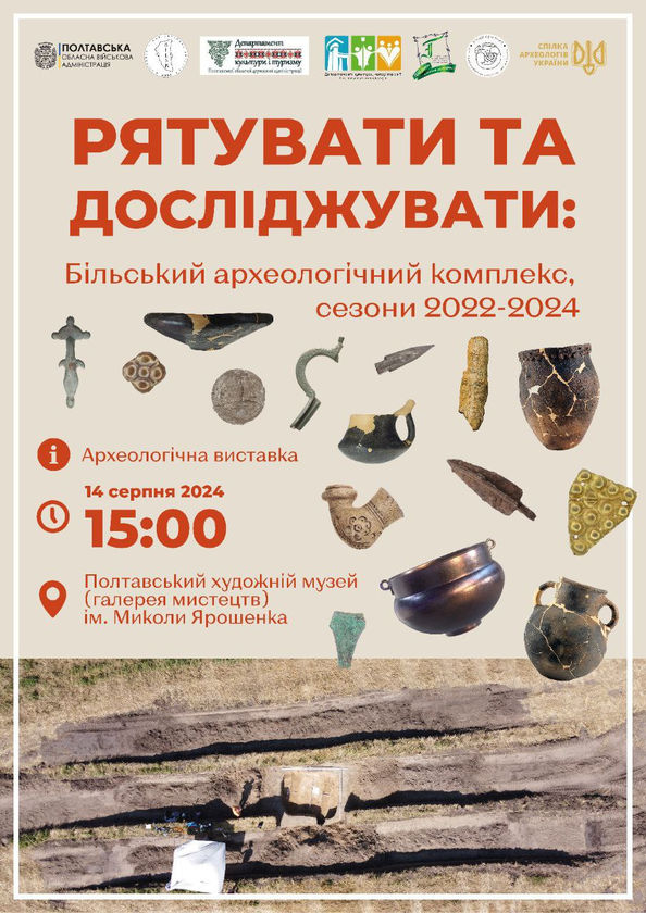 ВИСТАВКА «РЯТУВАТИ ТА ДОСЛІДЖУВАТИ: БІЛЬСЬКИЙ АРХЕОЛОГІЧНИЙ КОМПЛЕКС, СЕЗОНИ 2022-2024»