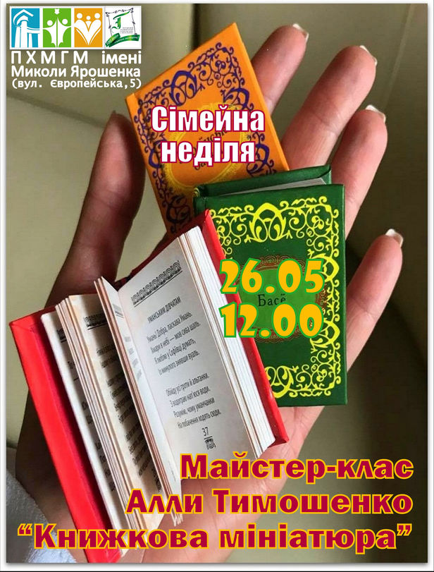 АфішаПодії Книжкова мініатюра в музейному просторі 24.05.2024 142 Ми у Facebook Ми у Twitter tweet Запрошуємо на сімейну неділю родини вимушених переселенців (безкоштовно) та усіх охочих (за музейним квитком)