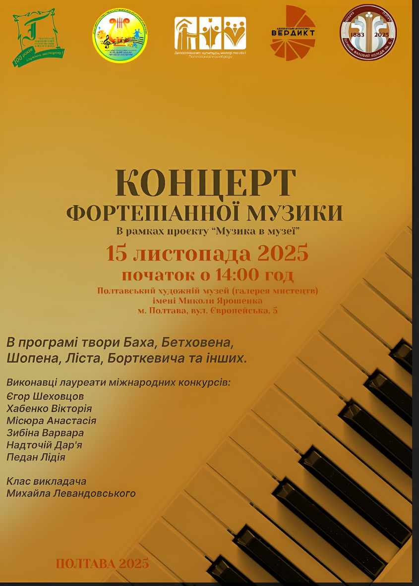 Запрошуємо на концерт талановитої української молоді – лауреатів всеукраїнських і міжнародних конкурсів. У програмі – твори Й.С.Баха, Ф. Шопена, Й. Брамса, Ф. Ліста, С.Борткевича, А.Пьяцоли та ін.