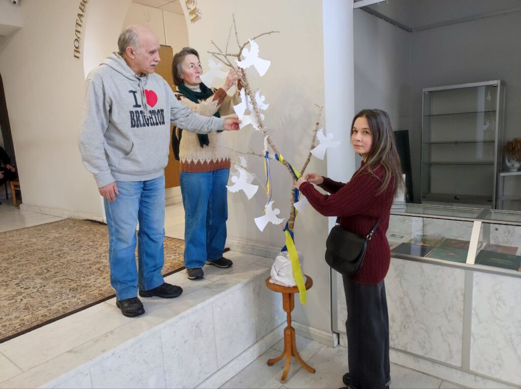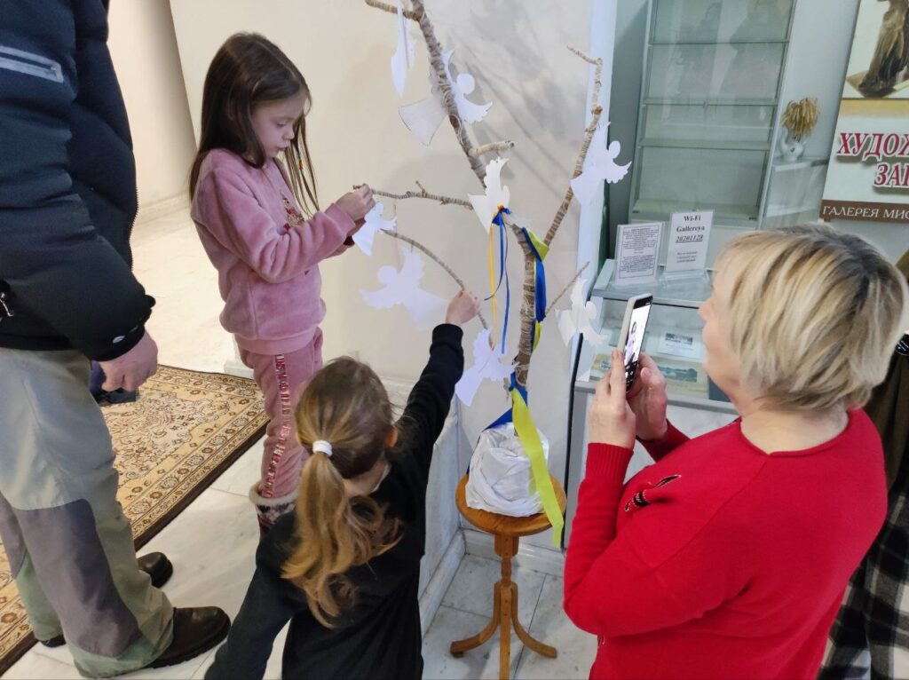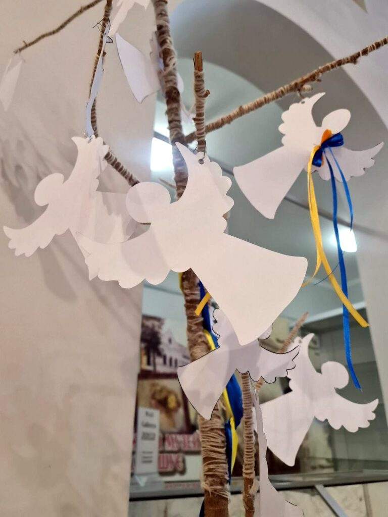 Ярошенківці та відвідувачі музею долучилися до всесвітньої тихої акції “Ангели пам’яті”, яка відбувається 18–20 лютого у містах і громадах по всій Україні та на всіх континентах. Її сенс – вшанування Героїв Небесної Сотні та всього українського небесного воїнства. «Ангели пам’яті» — це водночас меморіальна і мистецька акція. Виготовлення паперових ангелів-витинанок стає актом спільної участі й осмислення. Акцію започаткували 2014 року співачка й громадська діячка Анжеліка Рудницька та мистецька агенція “Територія А”. Відтоді вона стала всесвітньою традицією пам’яті. Щороку тисячі паперових ангелів з’являються на деревах у пам’ятних місцях — там, де українці відстоювали гідність, свободу і державність, а також в музеях, бібліотеках навчальних закладах. “…кожен ангел – цінний, він не лише символ загиблих за Україну, а й знак небайдужості та гідності тих, хто попри всі складності творить нову омріяну Україну. Ми обʼєднані памʼяттю і вірою у Перемогу. Щиро дякую всім, хто приєднався до нас. Вічна пам’ять Героям…», — говорить ініціаторка заходу Анжеліка Рудницька. Акція відбувається тихо — без гасел і промов, у тиші, з молитвою та свічками. Долучитися до заходу і вшанувати пам’ять загиблих може кожен — достатньо виготовити паперового ангела та розмістити його у пам’ятному місці свого міста; відвідувачі музею можуть розмістити ангелів на створеному для цього заходу дереві Пам’яті.