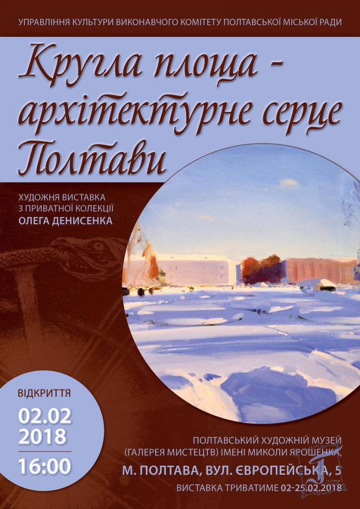 Відомий в Полтаві колекціонер і меценат Олег Денисенко започаткував проект з увічнення ансамблю Круглої площі, показавши його минувшину і сьогодення, відображені у картинах, листівках і фотографіях. Автор запропонував взяти участь у проекті художникам-полтавцям і зобразити будівлі так, як вони їх бачать, – у притаманному кожному стилі, у своїй техніці, вклавши в роботи зібрані роками враження і подих сьогодення. При цьому кожен митець отримував повну свободу творчості і вдосталь часу для втілення своїх задумів.