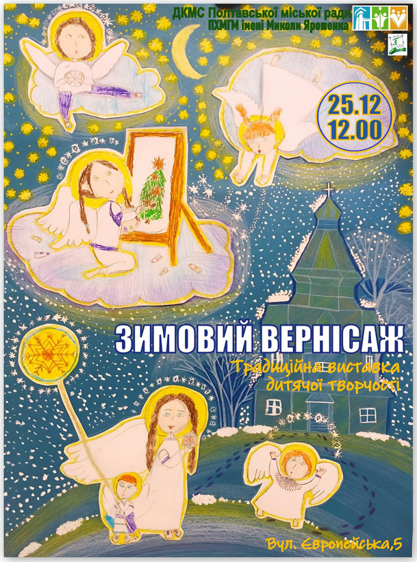 У період новорічних та різдвяних свят Полтавський художній музей (галерея мистецтв) імені Миколи Ярошенка приготував для полтавців та гостей міста подарунок – традиційну, вже 25-ту виставку дитячої творчості «Зимовий вернісаж». Чарівні витвори – малюнки, м’які іграшки, вироби з бісеру та оригамі, аплікації, квілінг, кераміка тощо – прикрашають залу дитячої творчості імені Сашеньки Путрі, пресцентр, сходи створюючи атмосферу неповторного різдвяного дива.