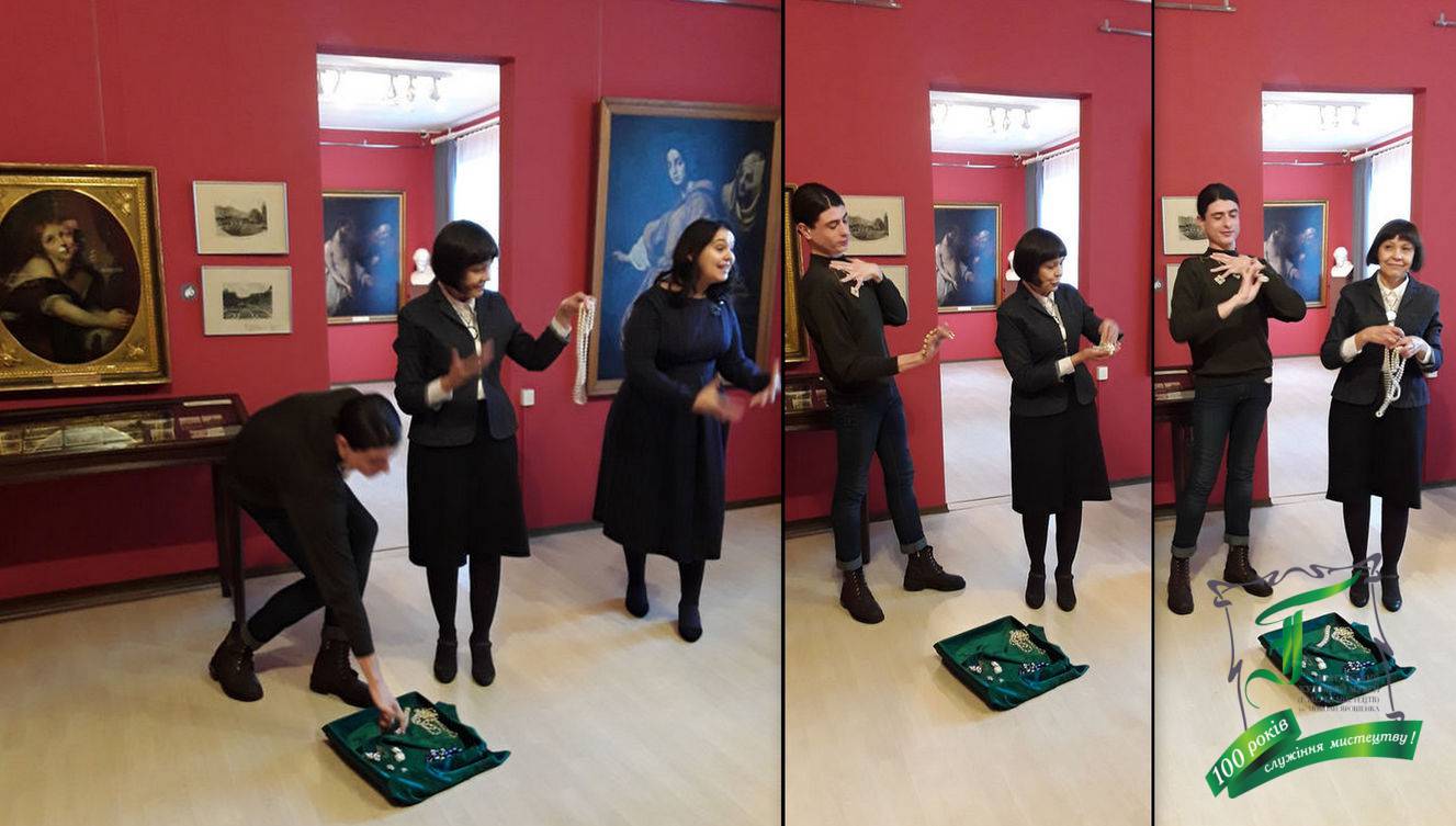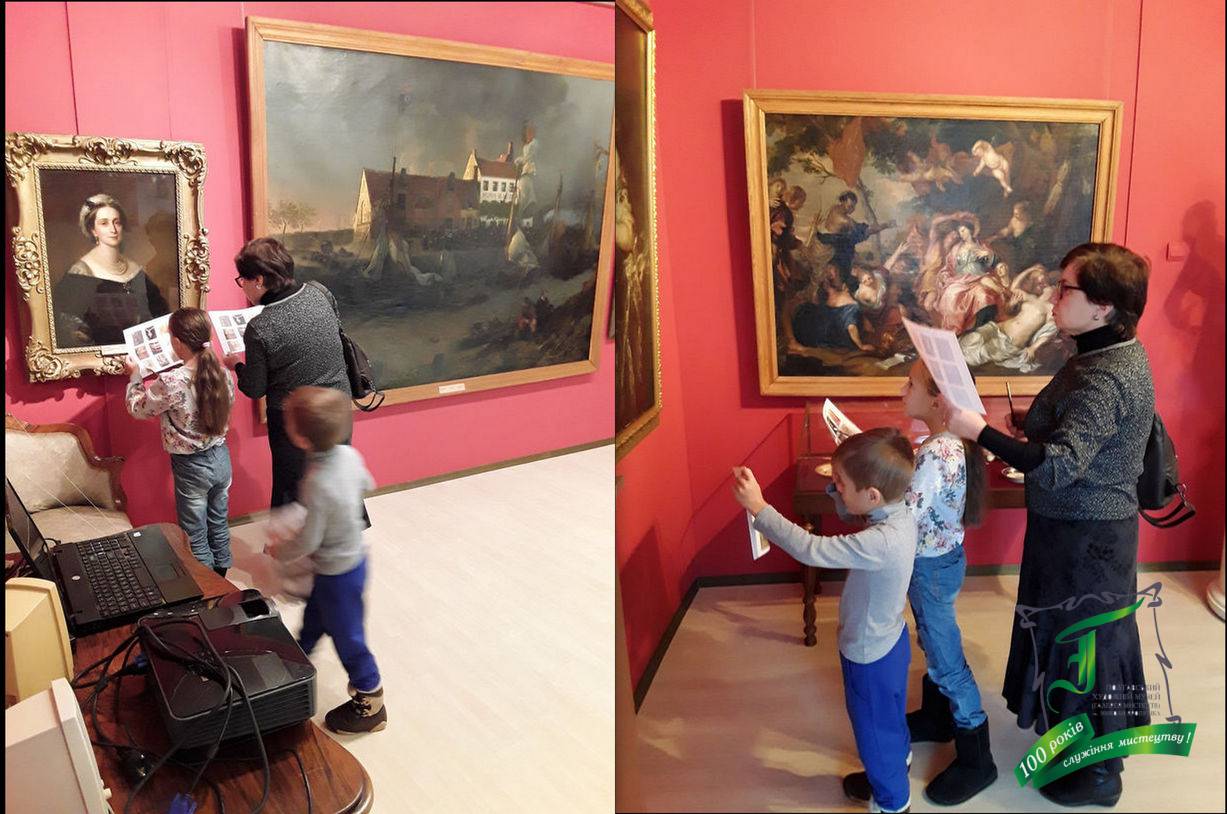 Учасники заходу спочатку познайомились з кількома шедеврами західноєвропейського живопису з музейної збірки, а потім отримали ігрові путівники із завданнями для самостійного дослідження експозиції і мали пройти квест. Це була пізнавальна гра з елементами детектива: і дорослі, і малеча захоплено “збирали скарби” – вивчали тематичні локації, зосереджено відшукуючи прикраси на полотнах західноєвропейських, російських і українських митців. Після проходження квесту родини поринули у світ паперової пластики: можливість власноруч виготовити яскраві вироби притягувала як магнітом і дітей, і батьків. Атмосфера була невимушеною і творчою.